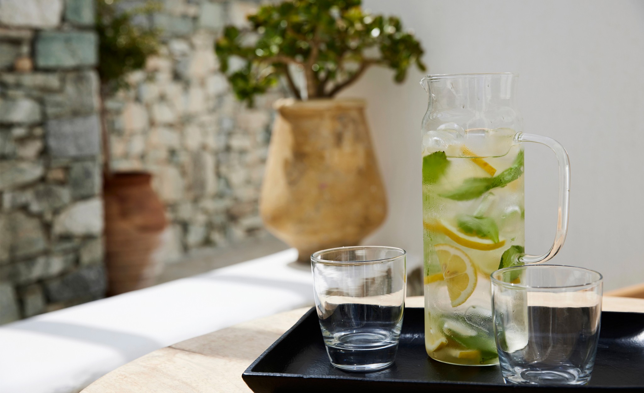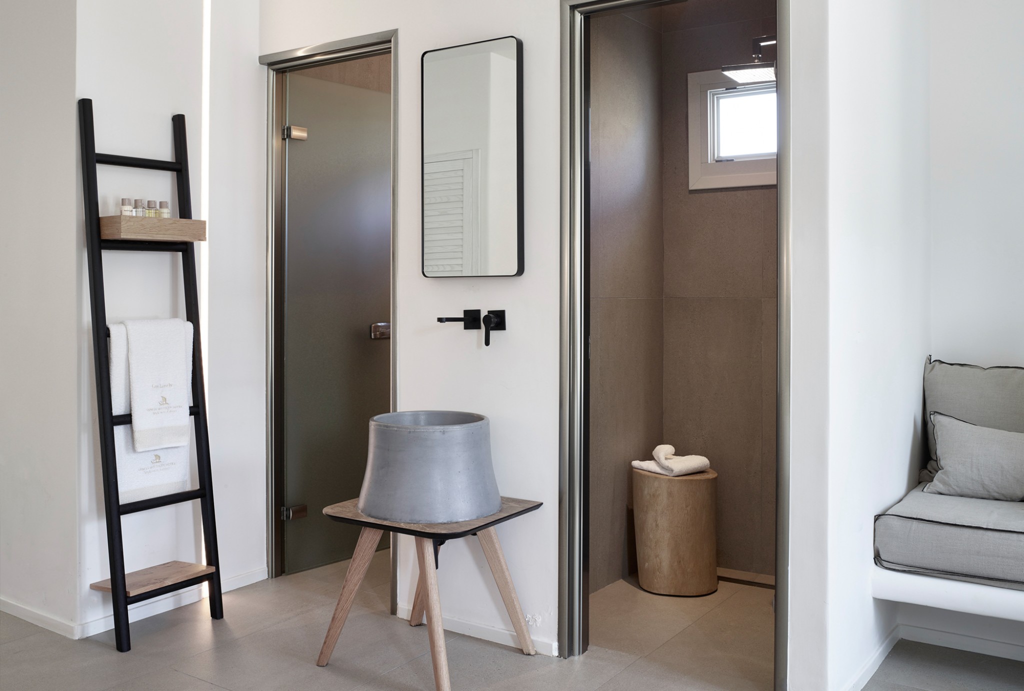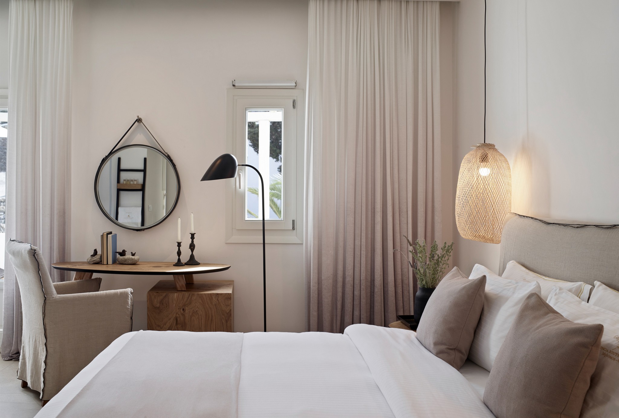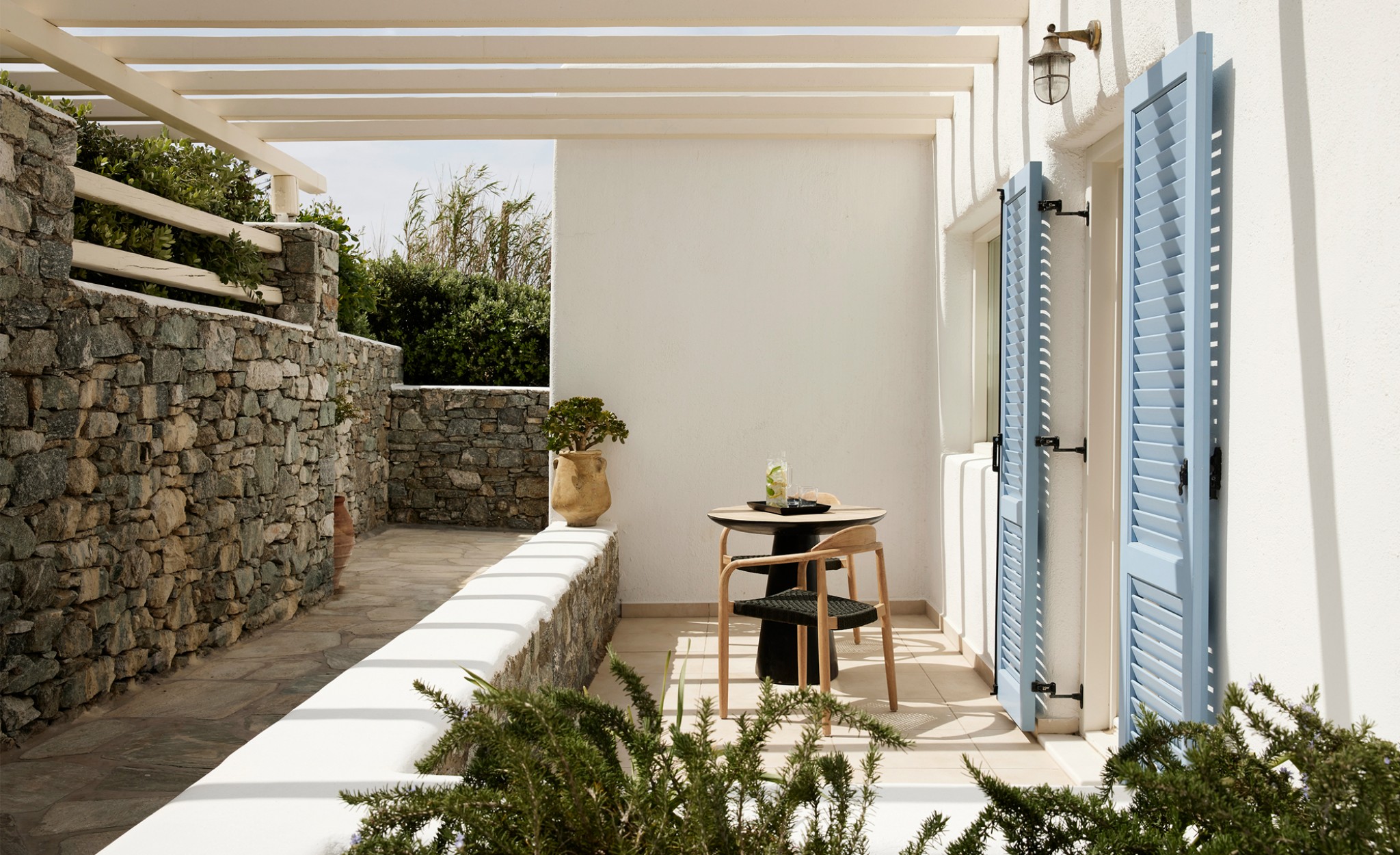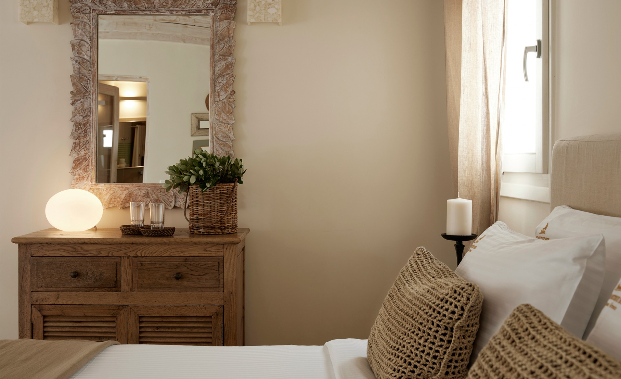 Relish the unique accommodation provided by modern and fully refurbished suites, feeling rejuvenated while lying leisurely on your private veranda. The interior of our suites is elegant, bright and decorated in a Cycladic style with modern twists and invitingly comfortable furniture. You will find a queen size bed and a bed sofa at the same area of the suite.